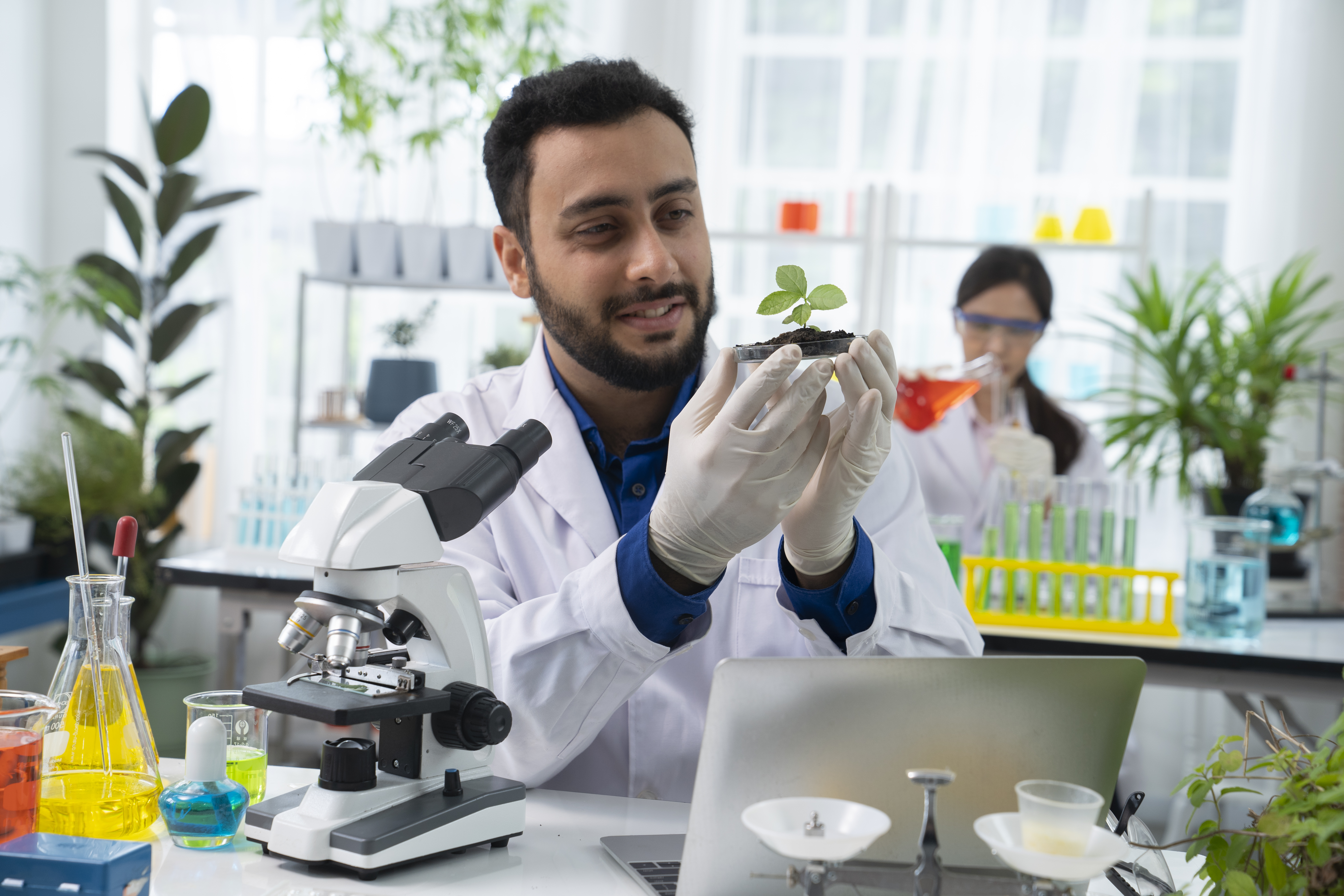 Biochemists investigate the chemistry of living systems to explain biological functions. They analyze proteins, metabolites, and pathways to uncover how organisms work. Their insights improve agriculture by supporting crop health, diagnostics, and bio-based solutions for food security.